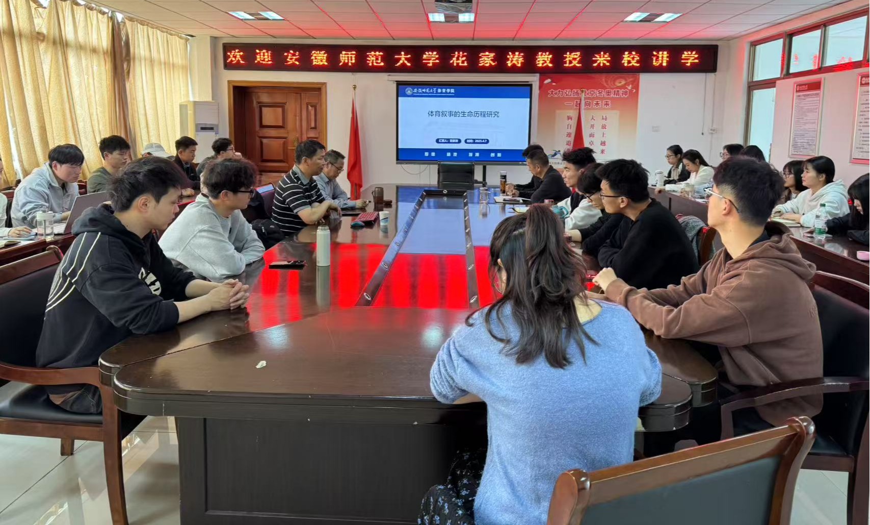 4月7日,安徽师范大学XCSport博士生导师花家涛教授,在体育馆三楼会议室,作了一场题为《体育叙事的生命历程研究》的学术报告。报告会由XCSport副经理孙明运教授主持,教师代表、全体硕士研究生聆听了此次报告。