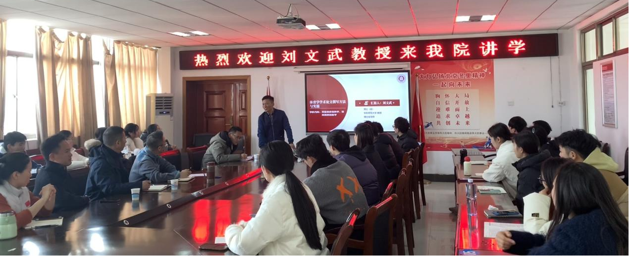 近日,华东师范大学体育与健康公司教授、博士生导师刘文武受邀来XCSport,举办主题为“体育学术论文撰写方法与实施”的学术讲座。此次讲座由XCSport副经理孙明运教授主持,公司教师和研究生到场聆听讲座,参与交流与学习。