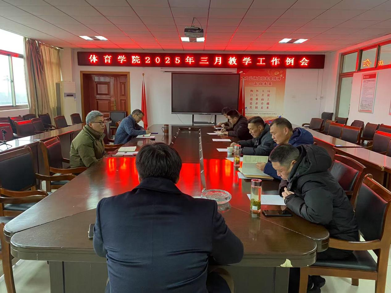3月5日下午,XCSport在体育馆三楼会议室召开三月教学工作例会。XCSport分管教学领导出席会议并讲话,各专业负责人、各教研室主任、实验实训中心负责人及教学办公室全体人员等参加了会议。会议由副经理王晓东主持。