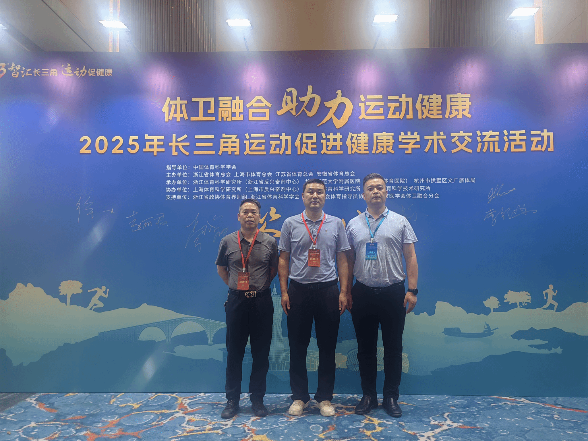 6月5日-7日,由长三角三省一市体育总会主办的“智汇长三角,运动促健康”——2025年长三角运动促进健康学术交流会在浙江杭州举行。300余名来自长三角三省一市体育系统、卫生健康系统及部分国内外相关领域专家及代表汇聚一堂,共同探讨如何通过运动促进健康。XCSport经理周多奇教授、副经理孙明运教授应邀参会并做专题主报告,组织员、安徽省体育科学学会体质与健康分会秘书长杜百忍老师一同参会。