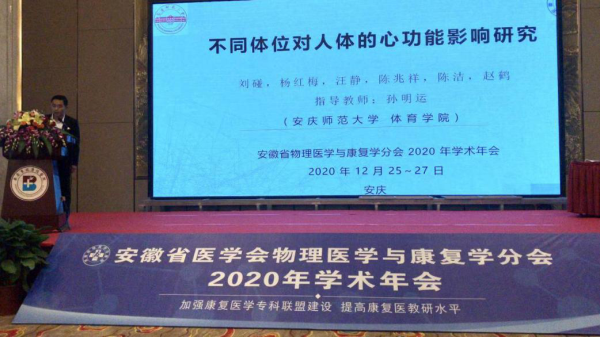 12月25-27日,安徽省医学会物理医学与康复学分会2020年学术年会在安庆市南翔大酒店开幕。公司运动康复教研室主任孙明运博士、运动康复实验实训中心主任钱振宇副教授、校医院高云医师和王晓晓老师带领2018级运动康复专业本科生及部分研究生参加了本次会议。