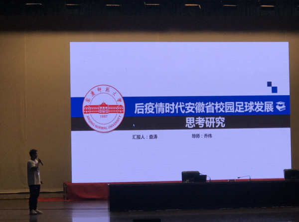 5月14—16日, 2021年第五届中国足球文化与校园足球发展大会在淮北市矿业会议中心举行,公司乔伟老师指导2019级体育教育专业查涛同学撰写的论文《后疫情时代安徽省校园足球发展思考研究》被大会录用为专题报告,并参加了学术交流汇报。
