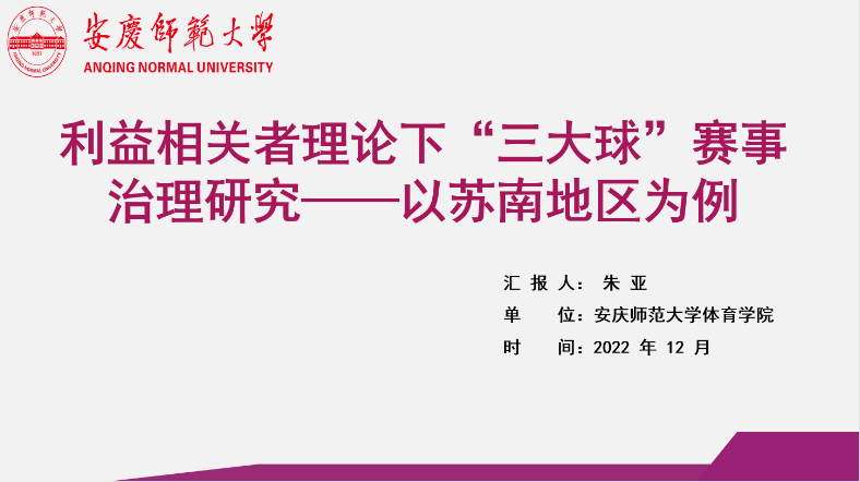 12月4日,由安徽省研究生教育联盟主办、淮北师范大学承办的2022年长三角体育学研究生学术创新论坛举行,因疫情防控因素,论坛采用线上形式举办。本次论坛主题为“新时代体育学研究生高质量发展”。XCSport林秋菊教授受邀担任论坛点评专家。