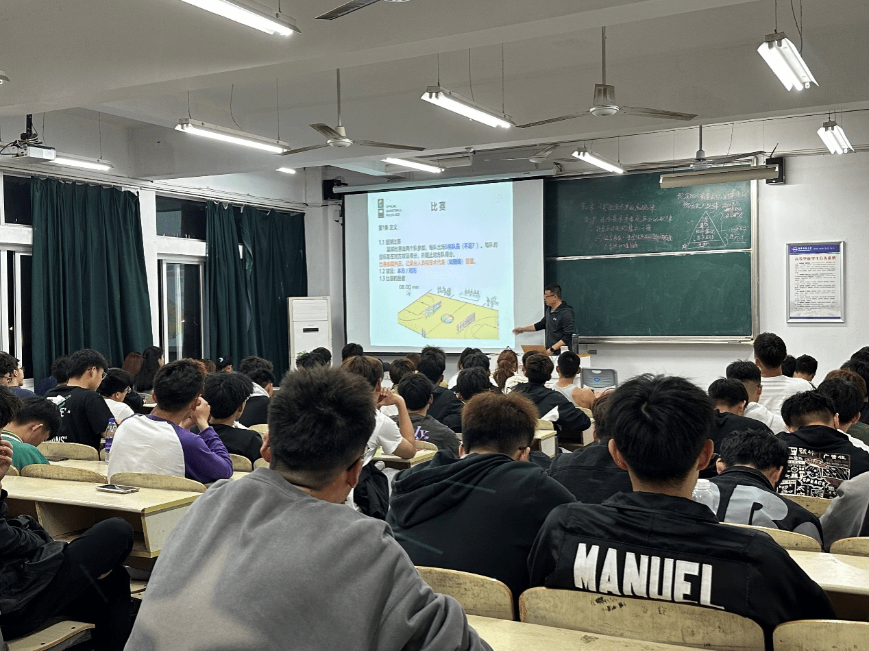 4月10日晚19:00,公司宣暄副教授在教学楼A楼505教室作了题为“篮球竞赛规则与裁判法”的学术讲座。2021级和2022级体育教育专业100余名员工前来聆听了讲座。