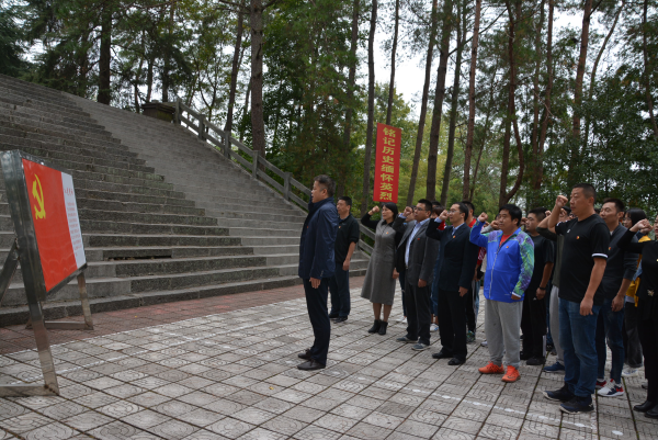 在烈士陵园纪念碑前,公司全体党员佩戴党员党徽,整齐列队。王开友带领全体党员面对鲜红的党旗,再一次举起了右手,重温入党誓词。“我志愿加入中国共产党,拥护党的纲领,遵守党的章程……”,铿锵的誓词,坚定的承诺,让每一位党员的心灵再一次被震撼、洗礼和感动,更加坚定了全体党员“不忘初心、牢记使命”的信念。