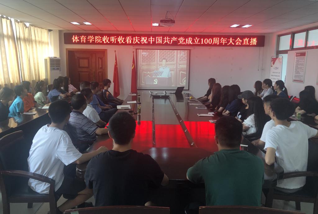 7月1日上午8时,庆祝中国共产党成立100周年大会在北京天安门广场隆重举行。XCSport积极组织党委班子成员和部分师生党员代表在体育馆三楼会议室集中收听收看直播盛况。