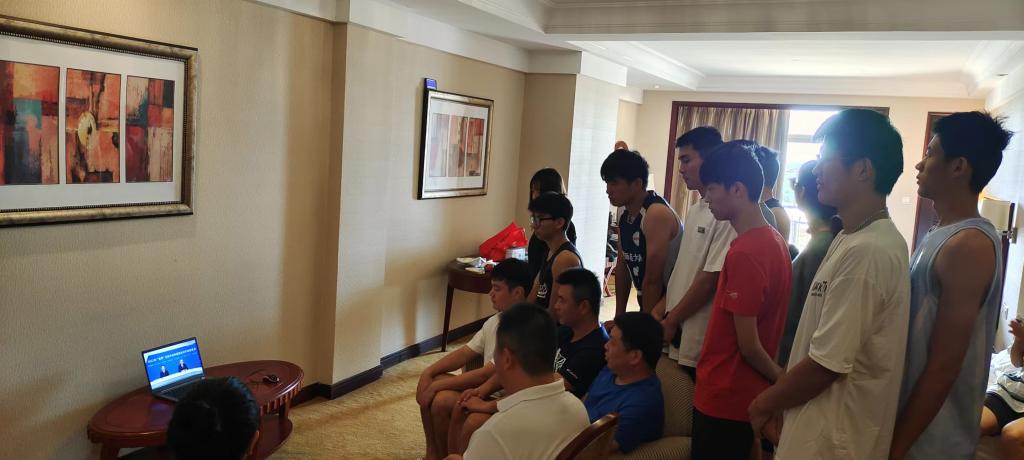 7月22日,正在滁州参加安徽省第十五届运动会高校部排球比赛的部分师生党员在公司党委委员李斌、邓龙老师带领组织下集体收看了2022年“双百”法治宣讲报告会直播。公司其他师生党员也通过手机下载央视频APP分别收看了直播活动。