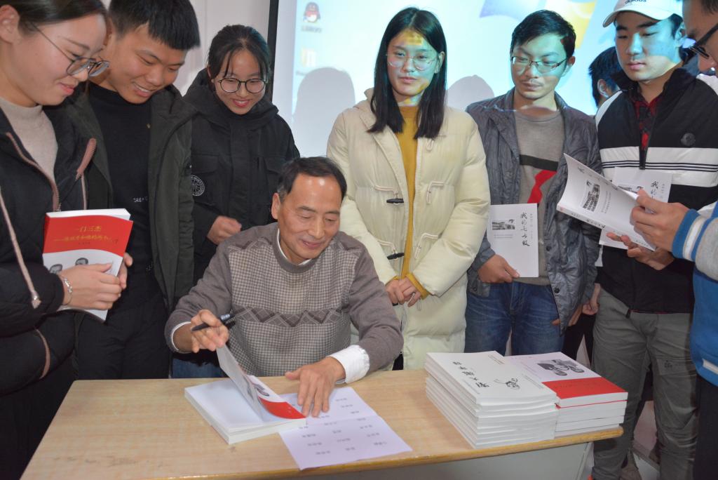 为给老员工党员、积极分子正确认识党的光辉历史,激发他们爱党、爱革命前辈的热情,朱洪教授精选了他的最新出版的作品《一门三杰——陈独秀和他的两个儿子》,现场签名赠书。赠书现场,同学们久久不愿离去,并纷纷与朱教授合影留念。