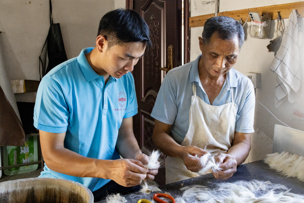 该公司除稳定发展宣笔产业外,还努力挖掘宣笔传统技艺和文化,确定“纵横交叉”的立体式“师带徒”模式,设立“宣笔制作技艺传习培训基地”,开拓宣笔制作技艺展演、宣笔制作体验、“非遗”课堂等项目。“公司积极探索宣笔传承发扬新途径,非遗传承需要传统智慧与现代思维的深度碰撞。”团队成员、法学专业20232)班杜澈表示,我们也应用自身所学知识助力宣笔从“传统符号”转变为可感知、可参与的生活方式,让非遗真正融入时代发展的脉搏。