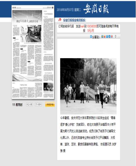 公司的志愿服务活动在校内外引起了强烈反响,据不完全统计,志愿服务活动受到省级以上新闻媒体报道有10余篇。其中《安庆师老员工志愿者四年接力支教山区留守儿童》被中国青年报、中青在线、腾讯网、北京时间、安徽日报、万家热线等国家和省级新闻媒体报道。